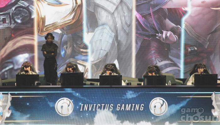 2세트 승리를 가져간 IG = 게임조선 촬영