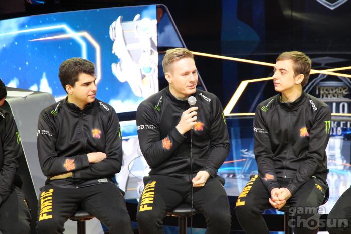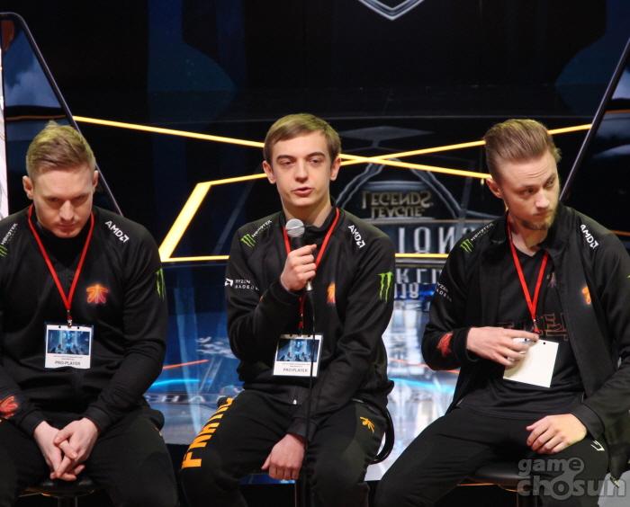 우선 롤드컵 시즌1 이후 처음으로 결승에 진출하는 서구 팀인 동시에 팀 자체적으로도 시즌1 우승 이후 7년만에 결승전에 진출하는 프나틱의 질의응답 시간이 진행됐다.