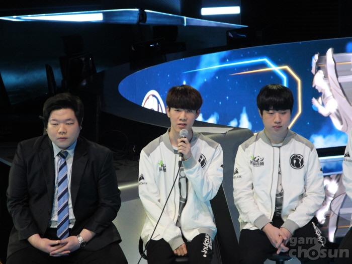 프나틱의 질의응답 시간이 진행된 후 인빅터스 게이밍(이하 IG)의 질의응답 시간이 마련됐다. 중국 리그인 LPL 소속 팀 중 4년 만에 결승에 진출하게 된 IG는 대륙의 마지막 희망으로 꼽히는 만큼 많은 질문이 쏟아졌다.