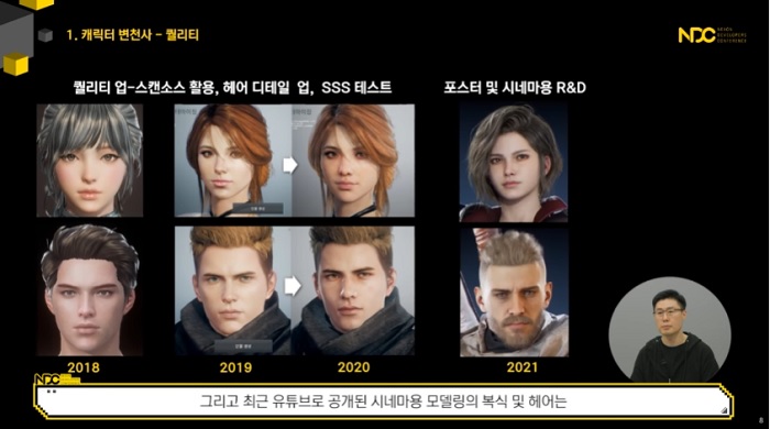 개발 초기인 2018년에는 모바일 쿼터뷰 MMORPG로 개발을 시작함에 따라 깔끔함을 강조한 반 실사풍 캐릭터로 구현했다. 또한 당시의 모바일 게임 스펙에 맞춰 폴리곤 수와 디테일 정도를 퀄리티 다운해서 NPC를 제작했다. 2019년과 2020년에는 본격적으로 PC 플랫폼 지원과 출시 시기를 고려해 퀄리티 업 작업에 돌입했다. PC 뿐만 아니라 모바일 플랫폼도 지원함에 따라 최적화도 고려했으며, R&D와 스캔 데이터 적용 등도 접목했다.