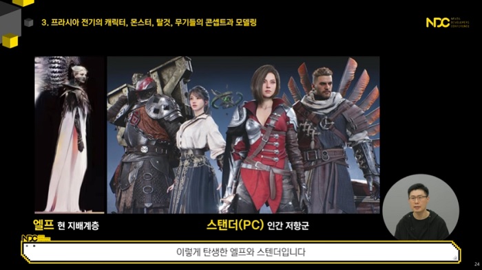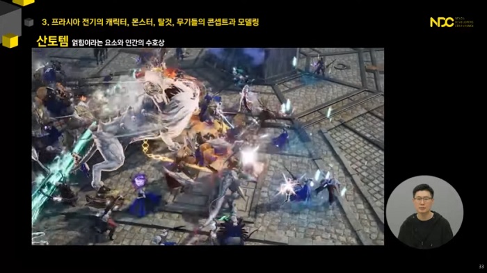 특히 대규모 공성전의 재미를 담은 모바일 및 PC 게임 '프라시아 전기'와 관련된 강연도 다수 포함되면서 이목을 집중시켰다. 현재 프라시아 전기의 캐릭터 유닛에서 콘셉트 및 모델링, 리깅 파트를 맡고 있는 강민구 개발자는 '프라시아 전기 캐릭터 개발 노트'라는 주제의 강연을 펼쳤다.