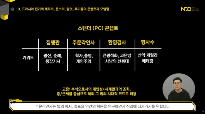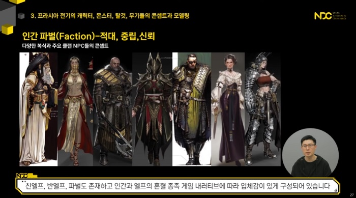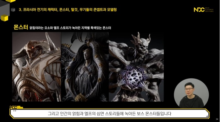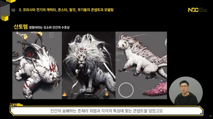 해당 강연에서는 넥슨의 차기작 '프라시아 전기'를 중심으로 캐릭터와 몬스터, 탈것, 무기가 어떻게 탄생되는지, MMORPG 콘텐츠 양산이 어떻게 이뤄지는지, 그리고 캐릭터 제작 팁으로는 어떤 것이 있는지에 대해 자세히 소개했다.