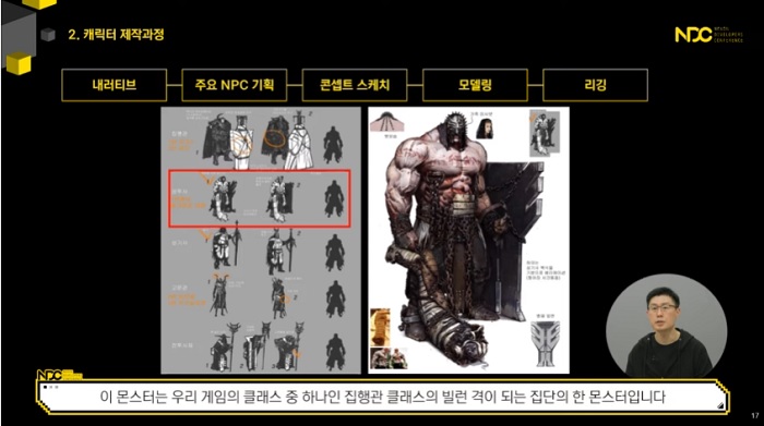 프라시아 전기의 클래스 중 하나인 집행관 클래스의 빌런 격이 되는 집단의 몬스터도 이러한 과정을 거쳐 완성됐으며, 광신도, 고문 기구라는 코드가 반영됐다. 인게임 실루엣에서 오는 부피감과 반사되는 질감, 그리고 대표 색감도 이 과정에서 고려하게 된다.