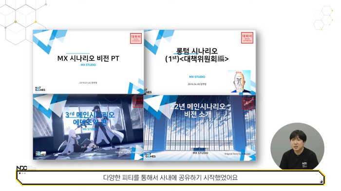 양주영 디렉터는 스스로에게 동료, 유저, 경영진을 설득하고 증명하기 위해 게임의 시나리오가 어떤 것인지 비전을 제시하고, 끊임없이 PT로 소통했다. 이를 통해 공감대를 얻고, 신뢰를 얻어 성과를 내려고 노력했다. 그렇게 주변의 협력과 도움으로 지금의 블루 아카이브 시나리오가 만들어지고, 좋은 평가를 받을 수 있었다.