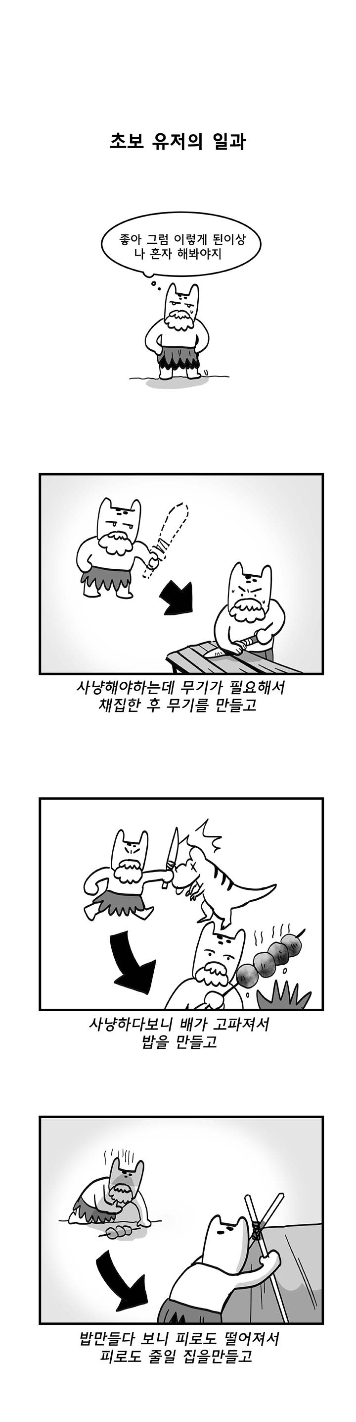 최근 1화에 이어서 2화를 연재했는데, 해당 작품에서는 튜토리얼을 통해 도구 및 의류 제작, 사냥, 요리하는 방법등을 배우는 것부터 퀘스트 진행과 이용자 간에 공동체를 형성하는 모습까지 솔직담백하게 담아냈다.