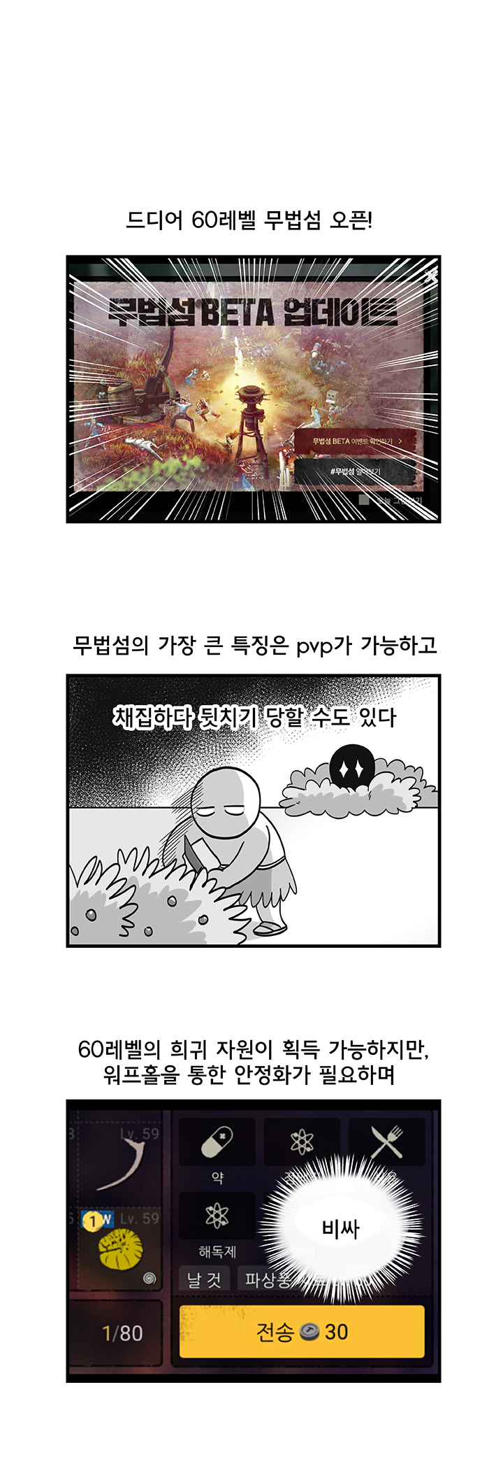 듀랑고를 소재로 웹툰을 연재하고 있는 '국도' 작가는, 최근 무법섬을 방문했으며 그곳에서 겪은 에피소드를 흥미롭게 그림으로 풀어내 눈길을 끌고 있다. 이에 웹툰 작가 국도의 '듀랑고에서 살아남기 6화 - 무법섬'을 소개한다.