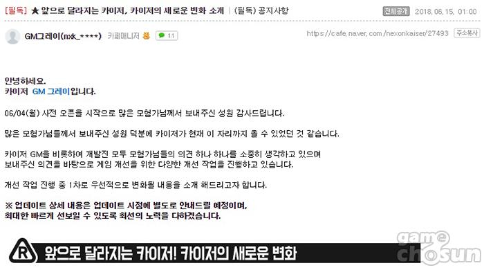 또 던전 난이도에 대한 이용자 피드백을 반영해 ‘침묵의 숲’ 퀘스트 난이도를 조정하고, 여러 종류의 ‘펫’을 얻을 수 있도록 일일 펫 구매 횟수를 기존 1회에서 3회로 바꿨다. 넥슨 카이저사업팀 최용준 팀장은 “드넓은 오픈 필드에서 자유도 높은 플레이를 펼칠 수 있는 게임방식에 이용자들이 만족감을 나타낸 것 같다”며 “앞으로도 이용자 의견을 반영한 편의성 개선과 콘텐츠 업데이트를 통해 유저 성원에 보답할 것”이라고 덧붙였다.