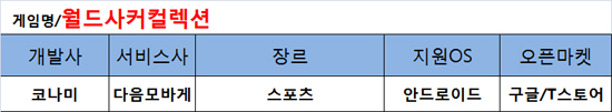 축구게임계에서 '코나미'는 곧 '위닝일레븐'이라는 등식이 성립될 정도로 코나미의 대표작으로 인식되고 있는 위닝일레븐. 이번에 출시된 카드형 축구 시뮬레이션 게임 '월드 사커 컬렉션'은 위닝일레븐의 액션성과 실제적인 그래픽은 쏙 뺀 '시뮬레이션성'에 촛점을 맞춘 게임이다.