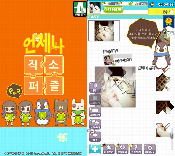 어찌보면 단순할 것 같은 퍼즐류 게임이지만 '언제나직소퍼즐'은 자신이 만든 직소 퍼즐을 카카오톡 친구들이 이용할 수 있다는 특징이 있다.