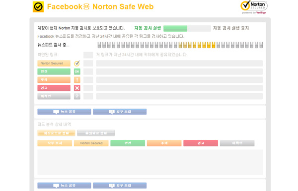 노턴 360에는 SNS 사용자들을 위한 배려도 담겨있다. 페이스북의 게시글 중 링크를 공유한 것들을 웹 보안 프로그램으로 검사해 안전한 링크와 위험한 링크를 가려준다. 이를 확인한다면 바이러스와 스파이웨어 등으로부터 보다 안전해지는 것은 당연지사다.