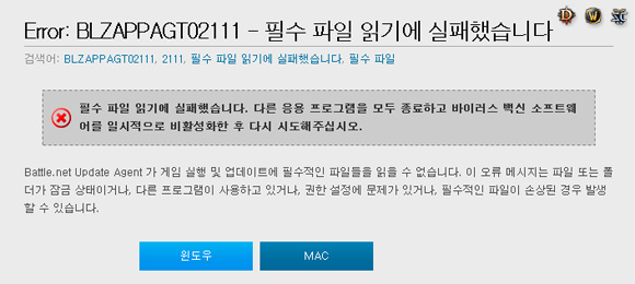 ▲ 스타2 안내 공지. 파일을 읽을 수 없다는 메시지에 백신 비활성화를 추천한다.