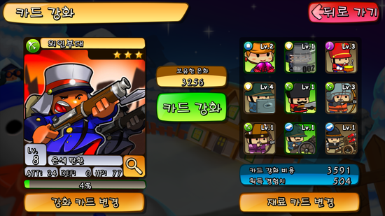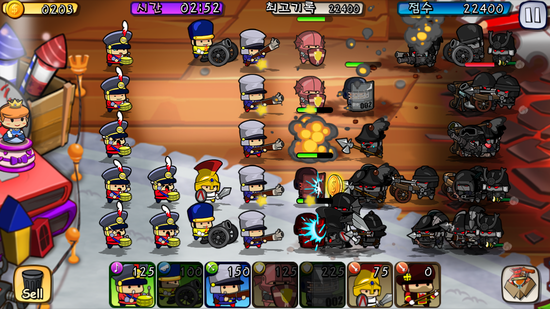 그렇다고 디펜스 방식이 새로운 재미를 주는 것도 아니다. 군악대 앞에 원거리 유닛을 배치하고 최전방에 속칭 '몸빵'으로 통하는 근거리 유닛을 세워두면 된다. 아 이 때문에 여자친구가 더 잘하는 게임이 되겠구나 생각했다. 여친은 보다 게임을 느긋하게 즐길 수 있을테니 말이다.