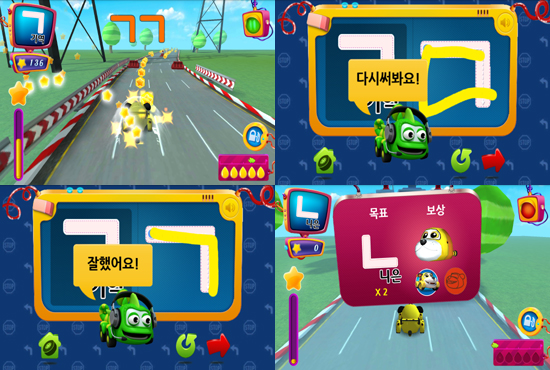 핵심이라 할 수 있는 교육용 콘텐츠도 아이들의 체계적인 학습을 유도한다. 브루미즈 한글레이싱은 친숙한 애니메이션 캐릭터로 레이싱을 펼치면서 정해진 한글의 자음과 모음을 모으는 자연스런 학습 방식을 채택했다.