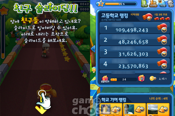 하지만 이 게임은 앞서 언급한 바와 같이 '학교 대항전'이라는 경쟁심 유발 콘텐츠로 인해 게임의 재미를 더하고 있다. 한국 유저들 특유의 애교심을 자극하는 이 시스템으로 인해 게이머들의 재접속을 유발하며 좋은 성적을 기록하고 있는 것.