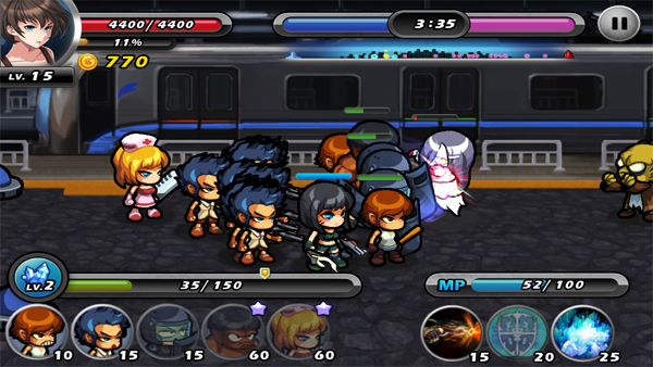 유저는 근거리 및 원거리 공격, 힐링 등 다양한 능력을 가진 12종의 유닛과 적을 얼리거나 강력한 피해를 입히는 12종의 스킬을 조합해 좀비와 전투를 즐길 수 있다.또한 헐크와 매딕, 미스터 엑스, 좀비 크러셔 등 스페셜 유닛도 만나 볼 수 있으며 캐릭터의 장비를 업그레이드해 보다 강력한 능력을 발휘할 수 있다.