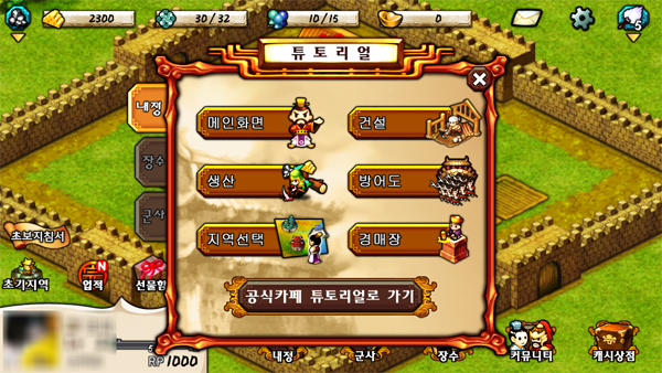 삼국지천하제패는 게임을 익히기 다소 어려운 만큼 매우 친절한 튜토리얼을 제공한다. 간단한 조작 방식부터 건물 배치, 생산, 병력, 전투 등 기본적인 콘텐츠를 처음 클릭했을 때 간단한 설명과 함께 직접 따라하는 방식의 튜토리얼이 제공 된다.