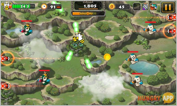 비행선은 괴물 새에 근접하게 되면 목표를 잡고 자동으로 미사일 방향을 변경하게 됩니다. 더불어 한 손가락으로도 플레이가 가능한 간편한 조작방식을 제공함으로써 유저는 괴물 새를 피할 수 있는 집중력과 순발력에만 몰입하며 게임 진행이 가능합니다.