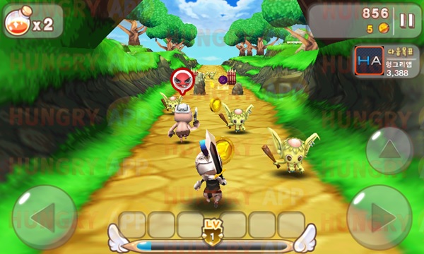 <막간용사>는 캐릭터가 앞으로 달리고 있어서 실제로 내가 달리는 느낌이 나며 3D 그래픽이어서 입체적으로 즐길 수 있다. 러닝게임은 2D보단 3D로 해야 더 재미있다.