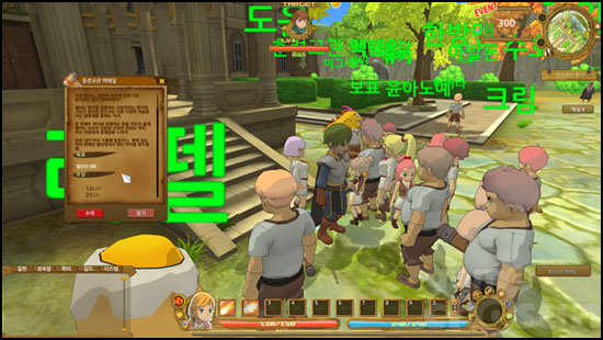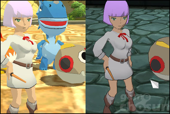 처음 캐릭터를 생성 시, 4종류의 캐릭터를 선택할 수 있다. 단검을 사용하는 디트, 마법을 사용하는 도로시, 해머를 사용하는 레이, 총기류를 사용하는 포이로 타 MMORPG의 화려한 캐릭터는 아니더라도 귀여운 헨치와 어울리는 일러스트다.