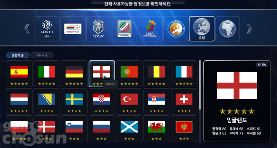 ▲ 매 경기 다른 팀을 선택할 수 있다. 다양한 국가대표팀도 선택할 수 있는 것이 특징.