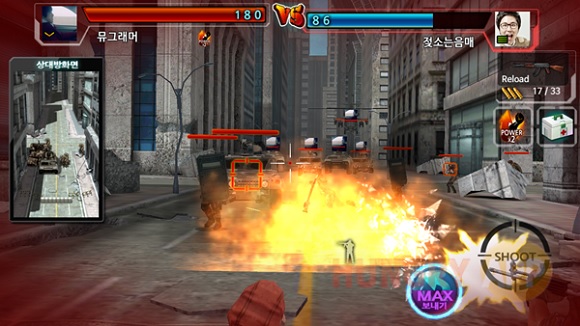 <총쏘는게임>은 제목 그대로 총 쏘는 게임이다. 밀려들어오는 적군들을 총으로 제압하며 내가 있는 진지를 지켜야 한다. 무지막지하게 밀려들어오는 적군들 전부다 총으로 제압할 수 있을까? 총쏘는게임은 가능하다. 엄청나게 커다란 장갑차, 탱크, 헬기 까지도 총으로 제압 가능하다.