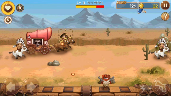저 마차를 탄 녀석처럼 잘죽지도 않는데 총알을 마구 쏘아데는 상황에선 다 방법이 있다. 바로! 화살표를 빠르게 두번 터치하여 발동!! 모든 총알을 피하는 기술이 와일드샷 만의 특색 있는 조작방식이다.