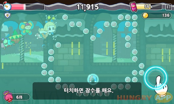 하지만 <캔디코스터> 는 기존 러닝게임에서 러닝만 하는 것이 아니라, 수영도 하고 날기도 한다.