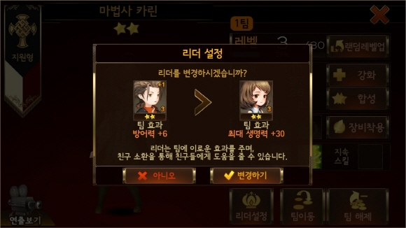 ▲ 영웅의 특성과 등급에 따라 팀 효과가 달라진다