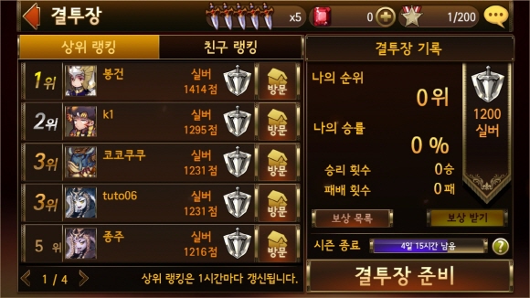 ▲ 결투장 화면을 통해 현재 시즌의 랭킹과 나의 전적을 확인할 수 있다.