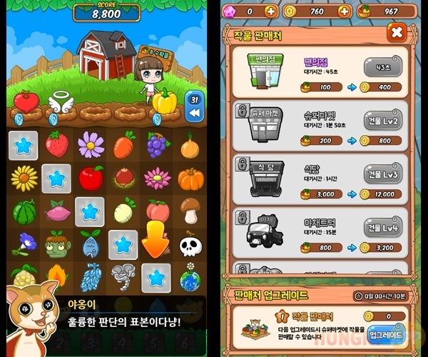 <빙고가든>은 플레이 하기 전 예상을 깨는 수확 방법이 랜덤으로 나오게 되는데 이것이 게임에 재미를 더하고 있다.
