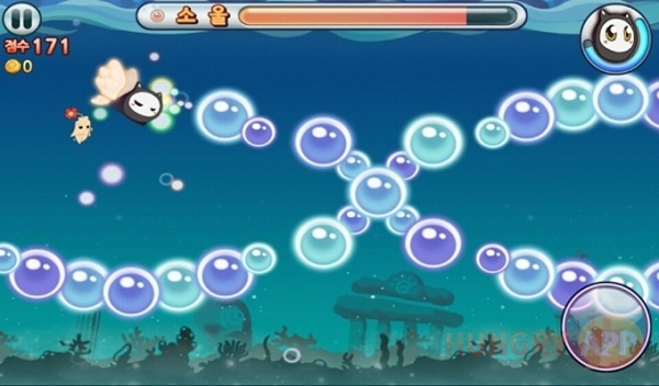 <버블몬>은 하늘과 물속을 오가며 피아노 선율을 따라 리드미컬한 러닝 액션을 즐길 수 있는 게임이다.