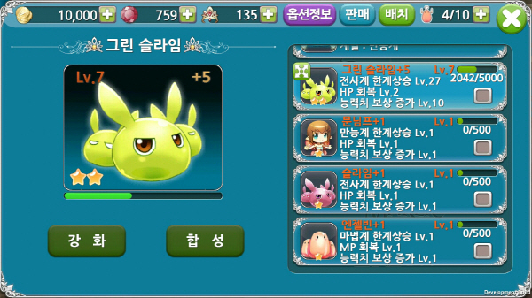 정령을 데리고 다니면 경험치를 습득해 자연적으로 성장하며, 방에 배치해 놓고 먹이를 먹이는 것으로 성장시킬 수도 있다.