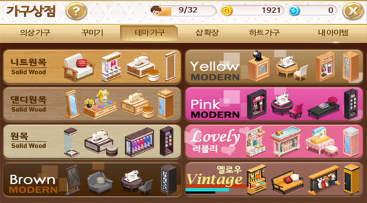 이렇게 열심히 수입을 올렸다면 이를 가지고 멋진 가게를 꾸며야하지 않겠는가? 샵 꾸미기를 통해 다양한 재료로 가게를 자신의 마음에 꼭 들게 꾸미고 직원을 추가 고용하며, 콜렉션을 모아모아서 보상을 받으며, 더욱 멋진 가게로 이주할수도 있다. 기왕이면 동네에서 장사하는것보다 백화점 안에서 럭셔리 하게 장사하는게 좋지 않겠는가?