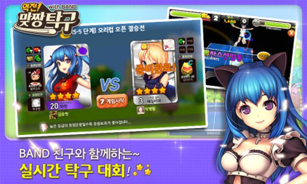 '역전! 맞짱탁구'는 간단한 화면 터치만으로 박진감 넘치는 탁구 플레이를 즐길 수 있는 게임이다. 뿐만 아니라 ‘밴드’의 주 이용자 층인 30~40대는 물론 남녀노소 누구나 쉽고 간편하게 즐길 수 있는 탁구 게임의 재미에 빠질 것으로 기대된다.