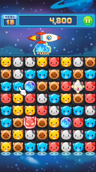 헛.........이것은..........애니팡? 이라는 착각이 들정도로 판박이로 닮은 이녀석 요리보고 조리봐도 애니팡이었다. 하지만 컨셉적인 차별화인 고양이를 통해 닮은 모습을 희석시키려한 노력이 보이며, 애니팡이 아주 단순함을 무기로 전국민의 사랑을 받았다면, 단순함에 익숙해진 유저들에게 고득점을 할 수 있는 다양한 시스템을 부여하여 조금 더 박진감 넘치고 다이나믹 하게 게임을 즐길 수 있도록 변형 업그레이드 된 느낌이 강하다.