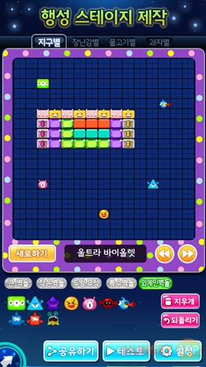 행성제작이라는 메뉴가 있어 직접 자신만의 별! 즉 행성 스테이지를 만들 수 있다. 다양한 블록으로 스테이지를 손쉽게 만들 수 있으며, 만드는 것에 그치지 않고 공유 또한 가능하다. 유즈맵으로 창의력을 키웠던 유저들이라면 놓치지 않고 해봐야 할 기능이다.