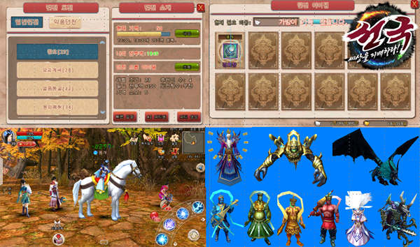 [탈 것] ‘선국’의 수집욕구를 불러 일으키는 요소는 장비만이 아니다. 기본적으로 튜토리얼에서 지급하는 백마 외에 랜덤하게 일반 필드에 출현하는 ‘함리’ 몬스터를 사냥할 경우 100% 에 가까운 확률로 탈 것 소환 두루마리를 획득할 수 있다.