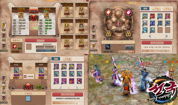 [기타콘텐츠] 선국은 온라인 MMORPG의 기본 콘텐츠를 그대로 옮겨왔다. 알아서 잘 크는 시스템인 ‘좌선’, 게임 내 인기 순위에 따라 유니크한 코스튬 의상을 지급하는 ‘선국여신’, 게임 내 호감도에 따라 남자 캐릭터와 여자 캐릭터가 혼인을 할 수 있는 ‘결혼’, 개인/문파/국가별 전투력과 PK수에 따라 순위를 매기는 ‘랭킹’, 편리하게 필요 아이템을 선택해 판매하거나 주문할 수 있는 ‘경매’, 국가의 보호아래 진행 되는 ‘물자 호송’ 등 끝없는 콘텐츠를 통해 플레이어에게 큰 재미를 선사해 줄 것이다.