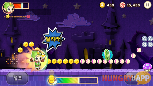 러닝 게임하면 떠오르는 게임이 2개 있다. 바로 쿠키런 and 윈드러너~ 쿠키런은 별다른 스테이지 없이 달리기만 하는 러닝 게임이고 윈드러너는 스테이지별로 미션을 클리어하는 방식으로 진행되는 게임이다. 하지만 도전!동화!는 러닝게임의 고수들이 즐길만한 게임답게 이 두가지 모드를 모두 다 가지고 있다.