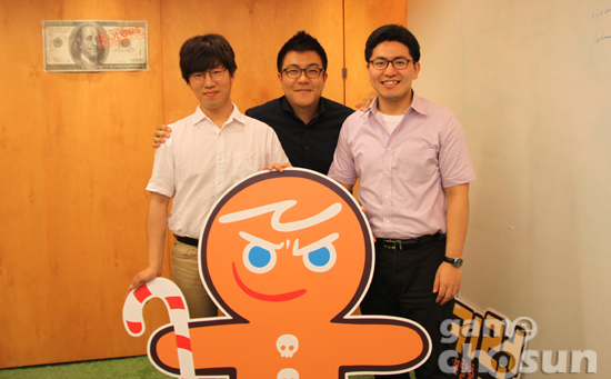 <▲ 데브시스터즈 서버팀. 왼쪽부터 박주홍 책임연구원, 홍성진 서버팀장, 김민우 수석연구원.>