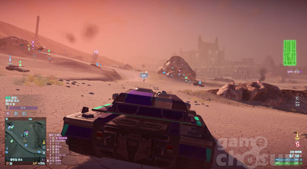 그 넓은 땅덩이를 두 발로 뛰어다니라고 하는 것은 무책임 하겠지요. 그래서 플사2에는 지상 탈 것과 공중 탈 것이 존재합니다. 일정 시간마다 충전되는 자원을 사용해 누구든지 차량을 생산하여 운전할 수 있습니다.