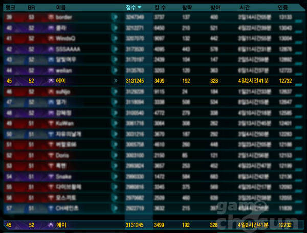 랭킹 50위 안에 들고 나서 플레이타임을 보고 깜짝 놀랬습니다. 켜 놓고 잠든 기억은 없는데 이상하네요....
