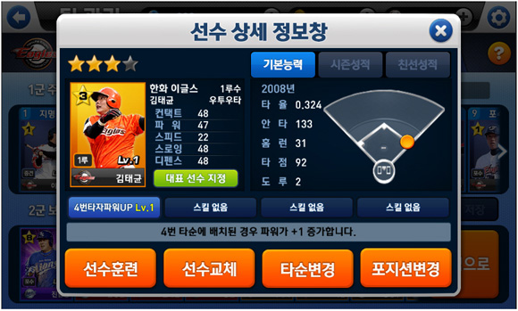 또한 각 선수들의 실제 시즌성적도 확인할 수 있어 더욱 실감나는 팀 구성이 가능하다.