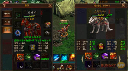 탈것은 말에서 시작해 승급을 통해 늑대, 곰, 호랑이 등을 거쳐 최종적으로는 용으로까지 성장시킬 수 있다.