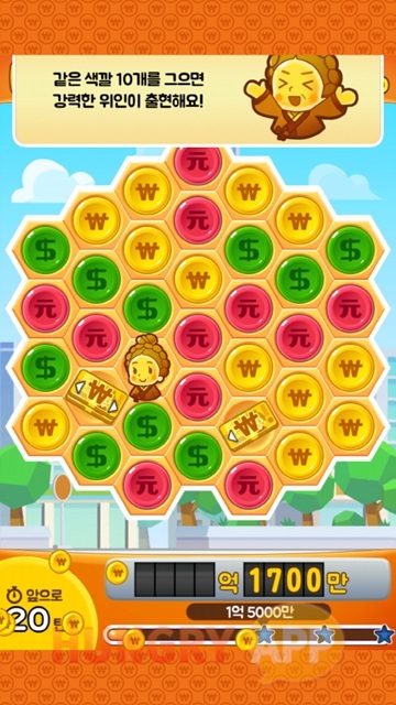 주간 미션으로 백만장자 스테이지라는 것이 있다. 타임어택으로 빨리 깰 수록 순위가 높아지는 것인데 1등을 이기면 보석을 받을 수 있는 경쟁 시스템이지만 유저끼리의 경쟁이 아닌, 정해져있는 숫자를 이기는 시스템이다. 지루할 수 있는 스테이지 미션에 보석도 받을 수 있고 조금 더 경쟁심을 심어 줄 수 있는 또하나의 컨텐츠가 아닌가 생각해본다.
