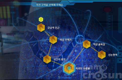 2020년의 서울을 배경으로 하고 있는 만큼 익숙한 지역들이 많이 등장한다. 1차 지역인 '강남GGV'에는 '강남역 인근'이나 '역삼 주택가', '역삼 골목길'등이 미션 맵으로 등장하며 2차 마을인 '(구) 구로역' 등, 실제 지역을 본따 만든 스테이지들이 있어 친숙한 분위기를 준다.