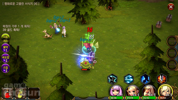 아기자기한 캐릭터들이 등장해 자동 또는 수동 시스템으로 적들과 전투를 벌인다. 자동 시스템으로 진행을 할 경우에는 이동과 기본 공격을 사용하고, 스킬은 자동이라 하더라도 직접 터치를 해야한다.