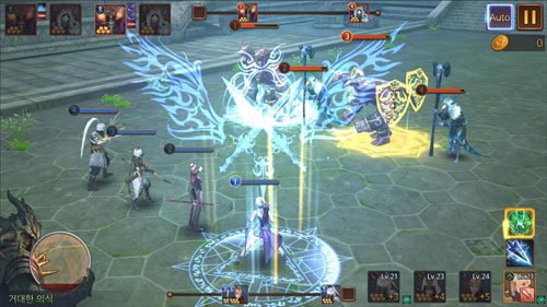 앞서 소개한 용병에 대해 설명을 덧붙이면 6단계 등급으로 나뉘어진 용병을 수집해 서브 캐릭터로 데리고 다닐 수 있으며 전투를 통해서 얻은 경험치를 공유하여 성장 가능한 시스템이다. 그 밖에도 모든 아군 캐릭터가 동시에 하나의 몬스터를 공격하는 합격기 시스템이 눈에 띈다.