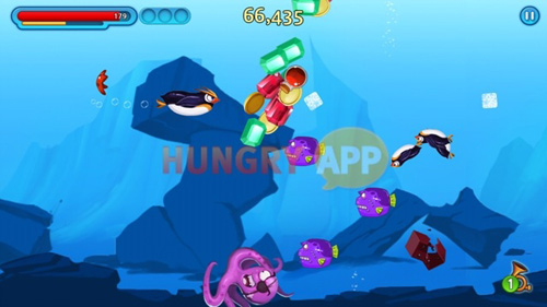 수트히어로는 슈팅게임으로 앞서 언급한 것처럼 단순하면서도 간단하다. 바다 속을 헤엄치며 악당을 물리친다는 이야기를 소재로 한 이 게임은 좌우상하의 4방향으로 움직이는 것이 아닌, 상하 이렇게 2방향으로만 움직이는 단순한 조작방식을 택했다. 간단한 조작으로 유저들이 가볍게 즐기기엔 좋겠지만, 다른 한편으로는 답답함이 느껴지기도 한다. 앞에서 달려오거나 아래에서 위로 뛰어오르는 적들을 얼려야 하는 펭귄이 정작 위아래로밖에 움직일 수 없으니 답답할 수 밖에. 각 방향에서 공격해오는 적들과 달리, 히어로라는 이유로 위아래로밖에 움직일 수 없는 핸디캡을 보면서, 왜 애니메이션이나 영화에서 영웅들이 계속 지다가 마지막에 반격을 하는지 알 것 같기도 하다.