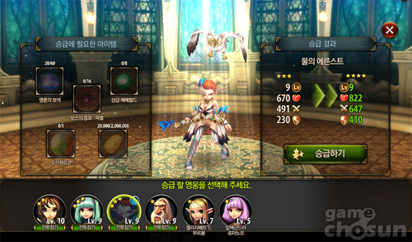 기본 튜토리얼 진행후 지급되는 영웅들은 1성 캐릭터로 다소 약한 편이지만, 영웅 소환소를 통해 등장하는 3~5성 영웅들은 다수의 몬스터를 기절시키거나 소환수를 이용해 공격하는 등 강력한 스킬을 가지고 있고, 훈련소를 통해 같은 등급의 영웅을 조합하면 더 높은 등급의 영웅을 얻을 수 있다.